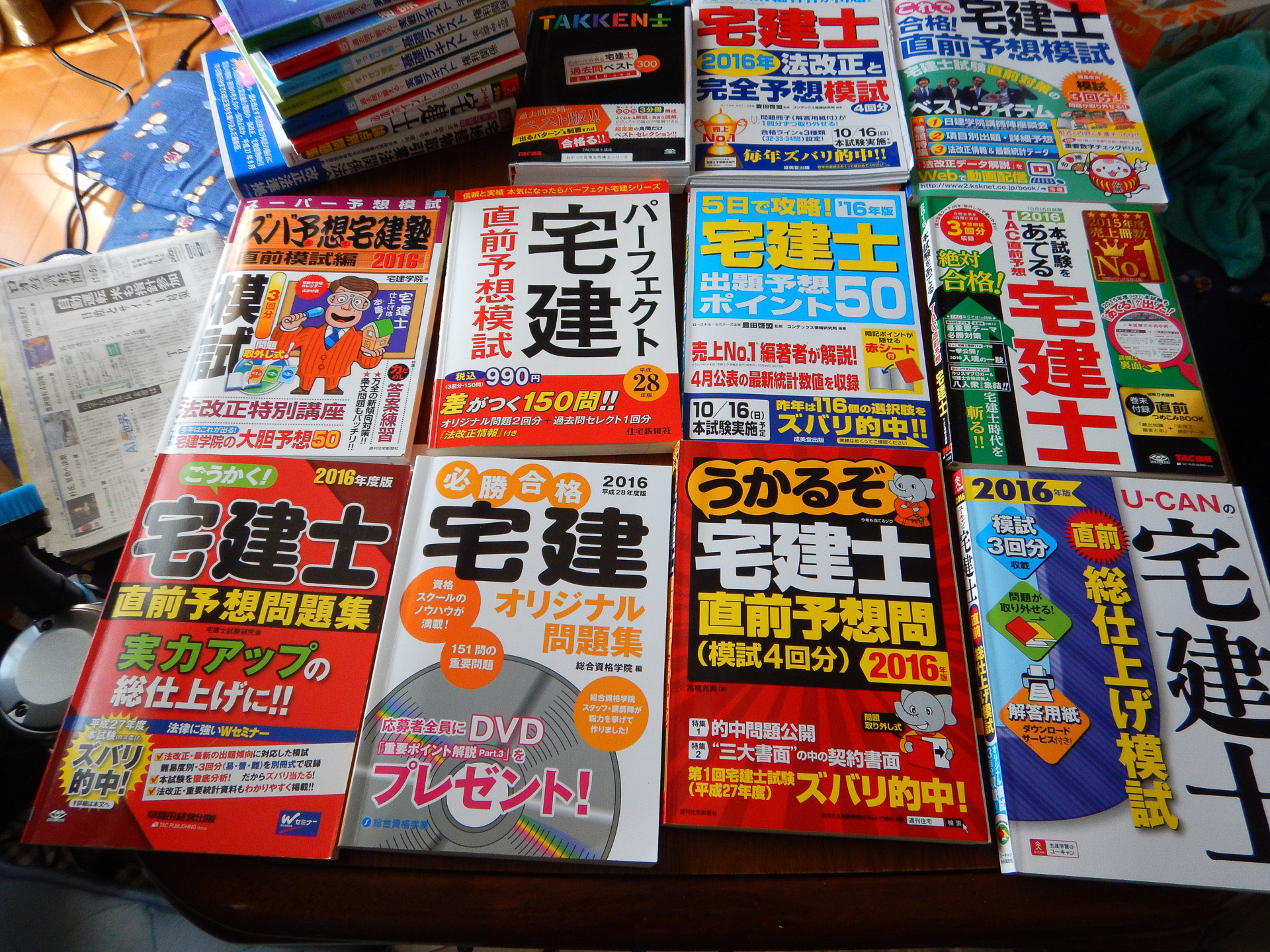完璧に合格したかったので、通信教育だけに頼らず、Amazonで販売していた宅建士の問題集を片っ端から購入しました。(写真の通りです)
